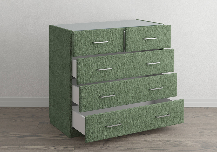Nolan создан для тех, кто хочет комод под конкретный интерьер, а не подбирает интерьер под комод. Широкий выбор фактур и цветов, скос под плинтус чтобы поставить вплотную к стене, пять ящиков с бесшумными доводчиками и опциональная стеклянная столешница, которая защищает поверхность и добавляет завершённости образу.