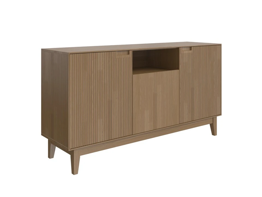 Геометричные боковые фасады и спокойная середина - визуальный баланс, который работает в стиле Mid-century modern, скандинавском и эклектичном интерьере. Доступен в нескольких породах дерева - подберите под свой пол или двери. Дополните зеркалом Tempo: получится законченная композиция, а не случайный набор мебели.