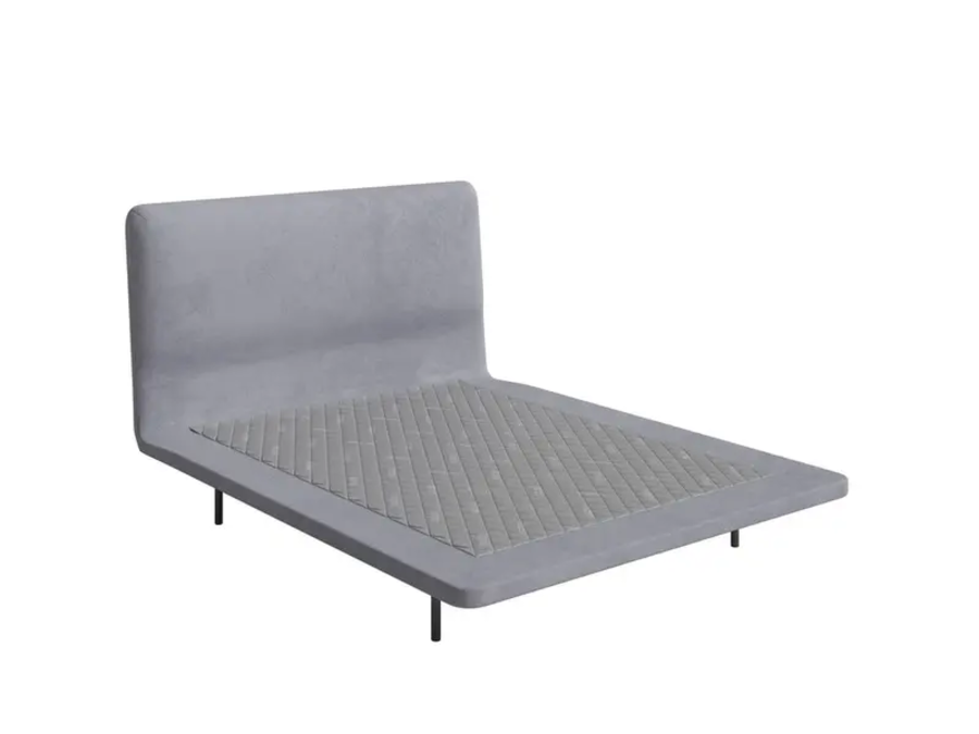 Опорная база кровати смещена к центру, а контур кровати остаётся свободным. Из-за этого создаётся ощущение лёгкости, будто конструкция висит над полом.