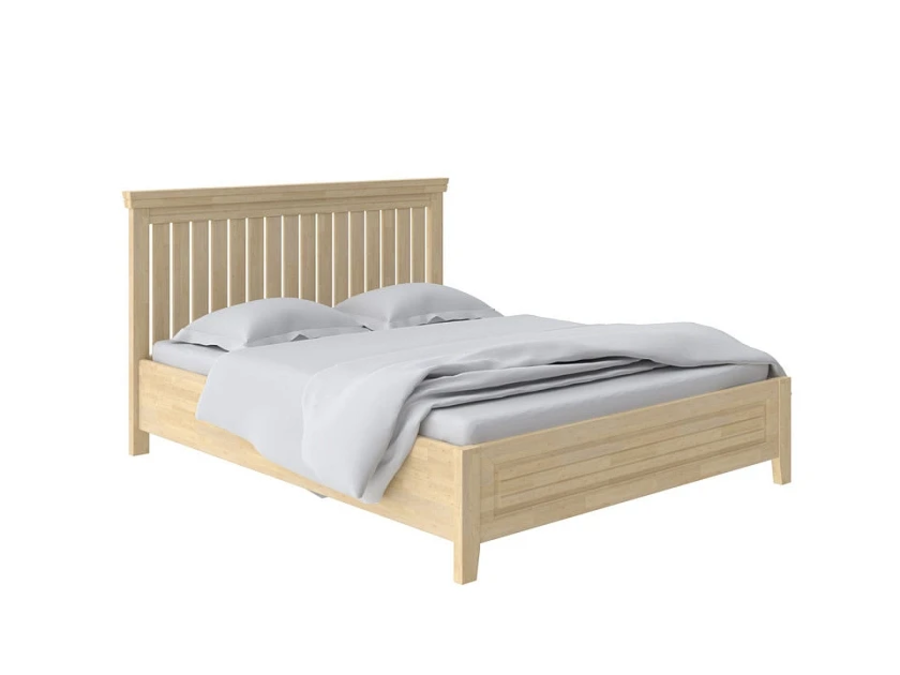 Кровать выполнена из натурального массива сосны или березы — экологичных пород древесины, известных своей прочностью и долговечностью. Каждая деталь тщательно отшлифована и покрыта безопасным лаком, сохраняющим природную текстуру дерева и защищающим поверхность от влаги и пыли.