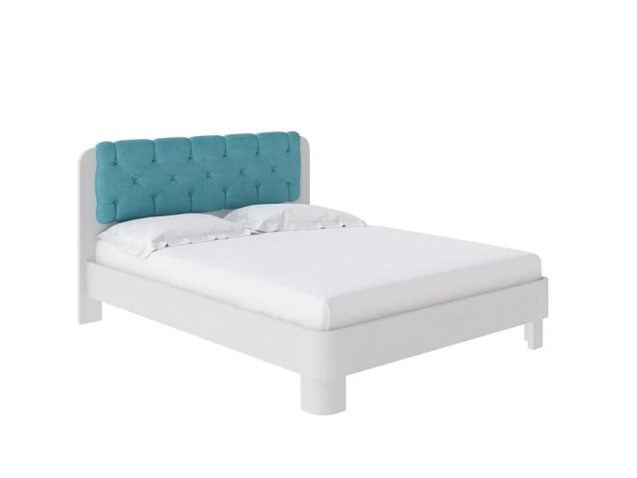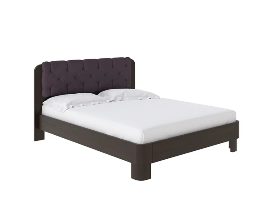 Обтекаемая форма основания кровати дополняется изящным изголовьем с уникальной каретной стяжкой. Изголовье обито мебельной тканью.